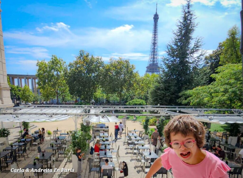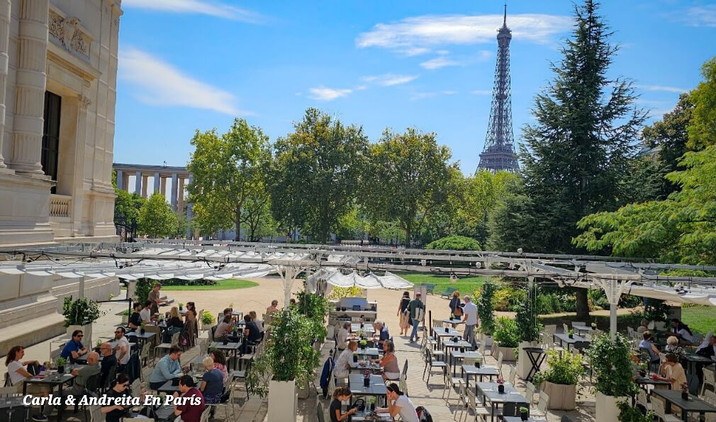 Imagina mesas al aire libre, rodeadas de vegetación y con la elegante arquitectura del palacio como telón de fondo. El ambiente es parisino en su máxima expresión: desenfadado pero sofisticado, con ese encanto que combina moda, arte y gastronomía en un solo lugar.