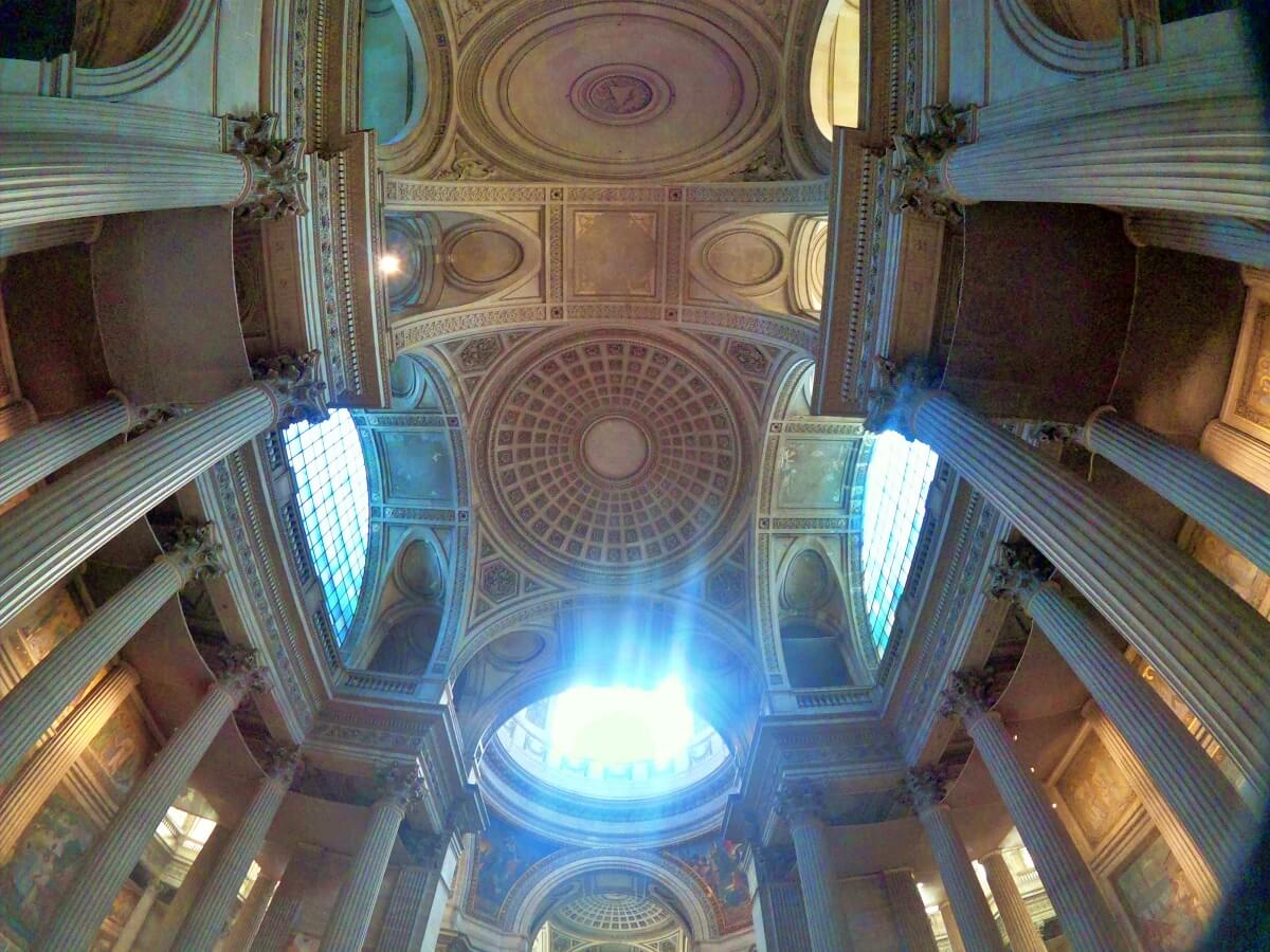 El Panteón es uno de los edificios más impresionantes del período neoclásico. Con 83 m de altura es majestuoso. La fachada recuerda al Panteón de Roma con un imponente pórtico de columnas corintias. El interior está ricamente decorado con mosaicos y pinturas que representan escenas de la Historia de Francia. Los frontones presentan esculturas de Pierre-Jean David d’Angers, un patriota posrevolucionario. Y está rematado por una enorme cúpula.
